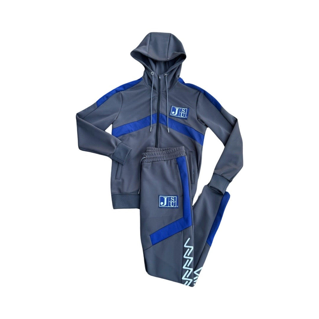 Our Lightning Rod Tracksuit features thick polyester to keep you comfortable and warm, zipper pockets for concealed storage, and reflective print for visibility at night.